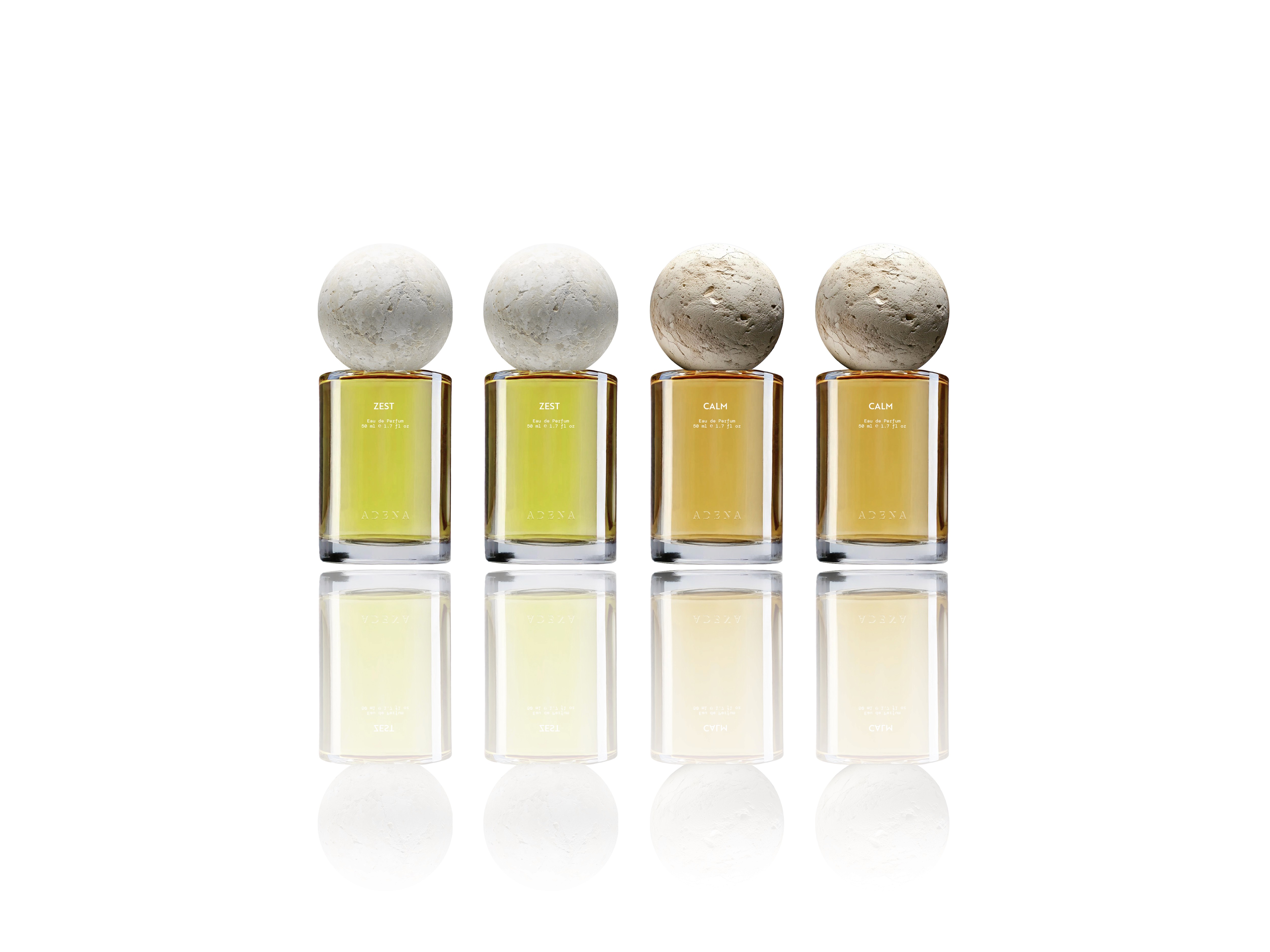 Adena is a modern, minimalistic fragrance brand built around the harmony of nature, form, and human experience. Its two scents, Calm, a grounding signature, and Zest, a burst of brightness, express different sides of emotional duality.